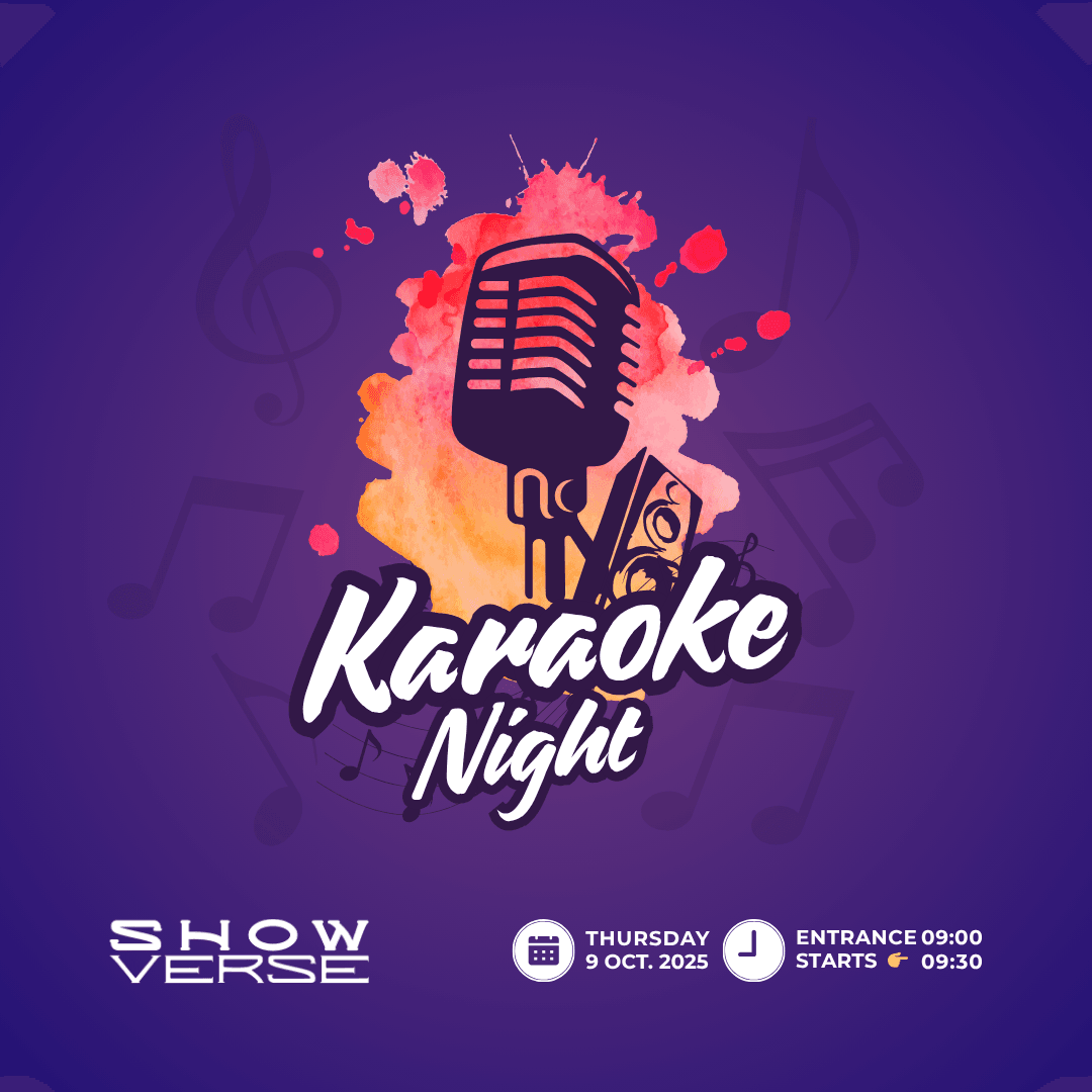Thursday October 9 at 9:00 PM | Karaoke Night Vol. 2 by SHOWVERSE | Whether you want to sing, share the stage with friends, or just enjoy as part of the audience — the night is all about fun! | It’s not about the voice… it’s all about the confidence! | And if you play an instrument, bring it along and make it part of the vibe.. | Venue: Laughstore Theater | Doors open at 9:00 PM | Show starts at 9:30 PM | Book your ticket now — seats are limited!
