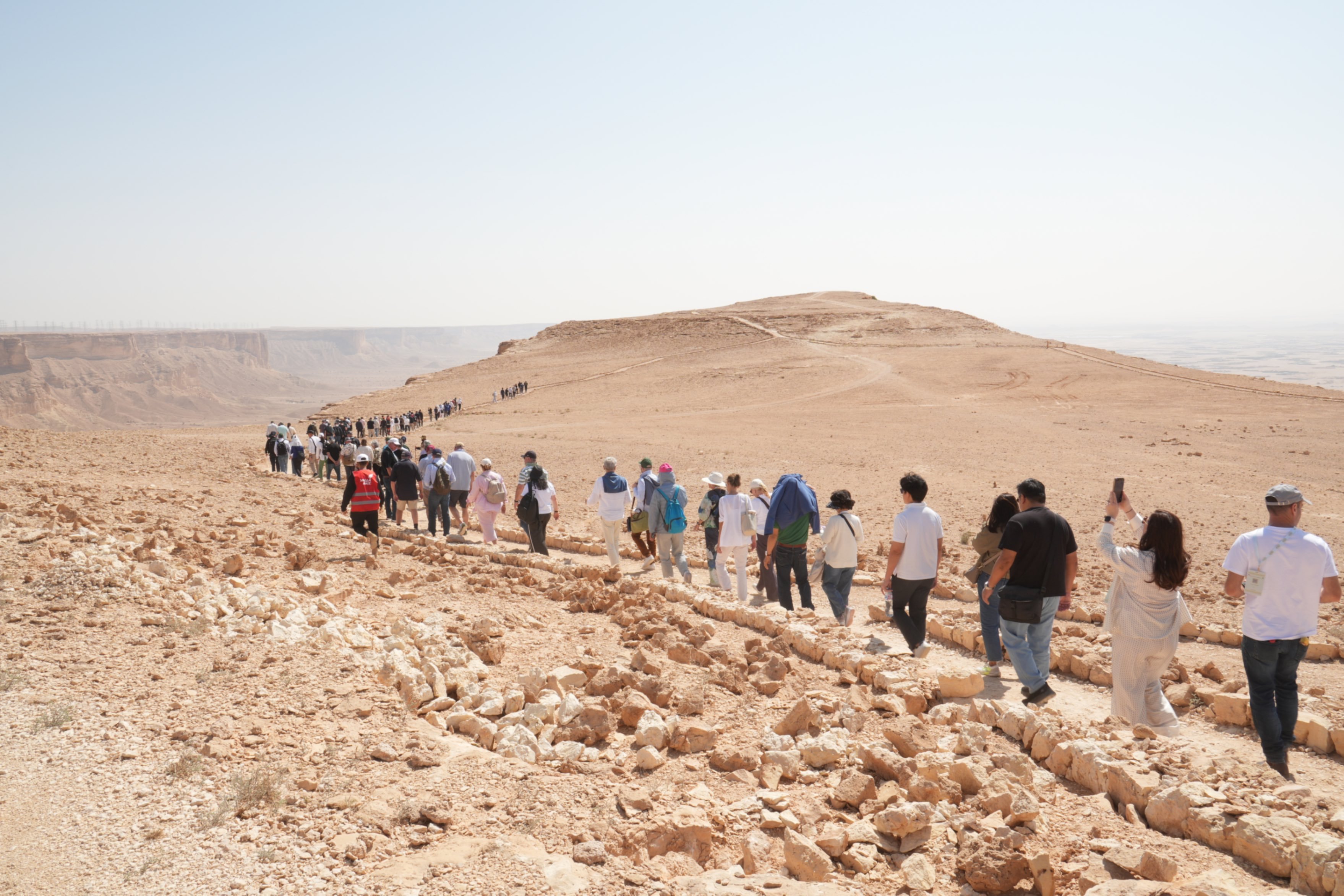 Get ready for an unforgettable adventure at the First Edge of the World! Join us on an exciting journey to the breathtaking Tuwaiq Escarpment, which stretches for an incredible 1,000 km. You’ll have the chance to explore spectacular viewpoints rising up to 300 meters high, where you can walk along the stunning cliff edges.