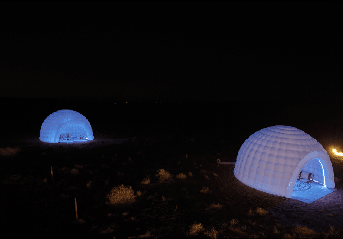 A private and elegant setup overlooking the golden-red dunes, ideal for small groups or families who value privacy and tranquility in a premium desert ambiance.