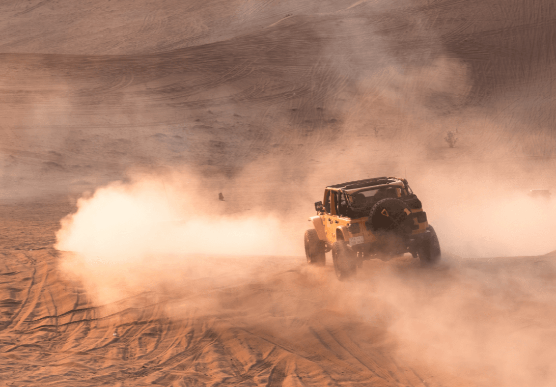 Discover the beauty of the Red Sands with a luxury Wrangler safari driven by expert guides.